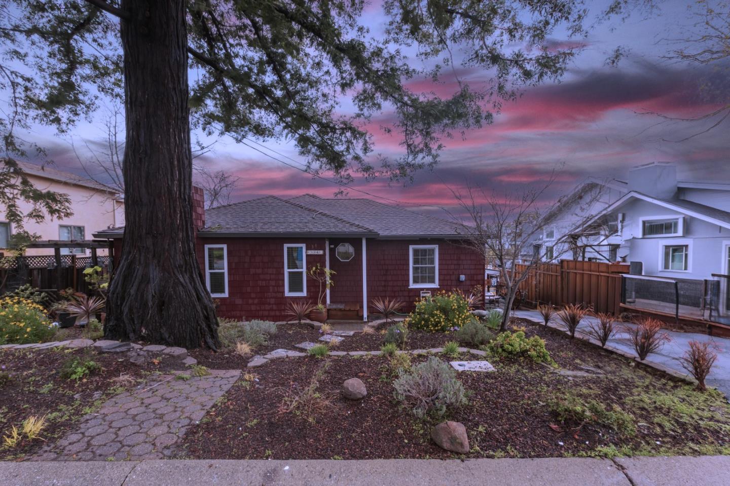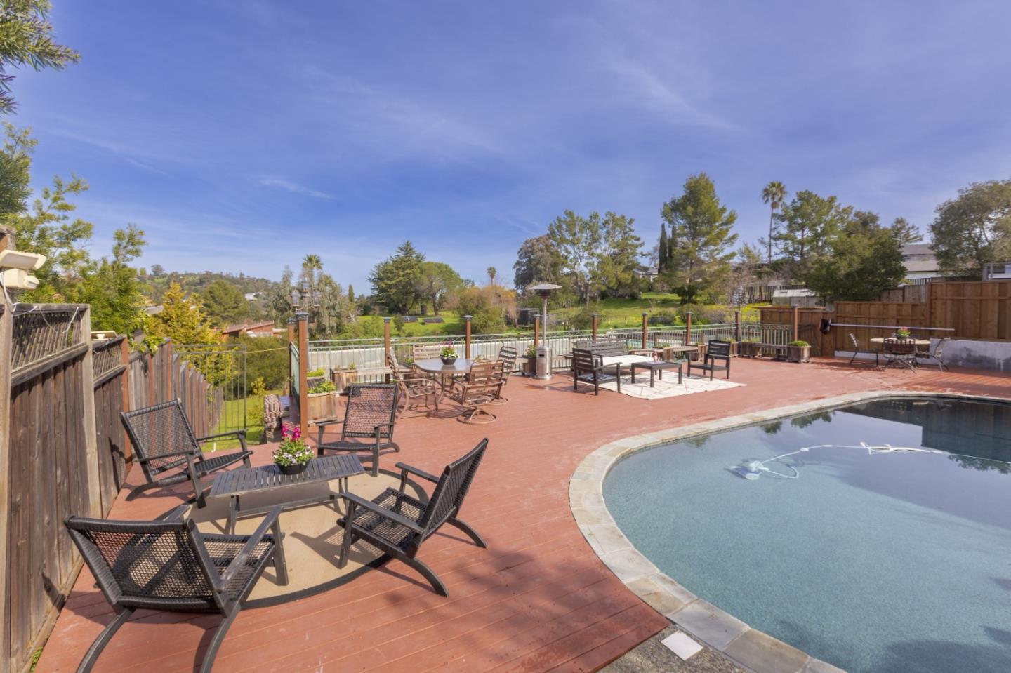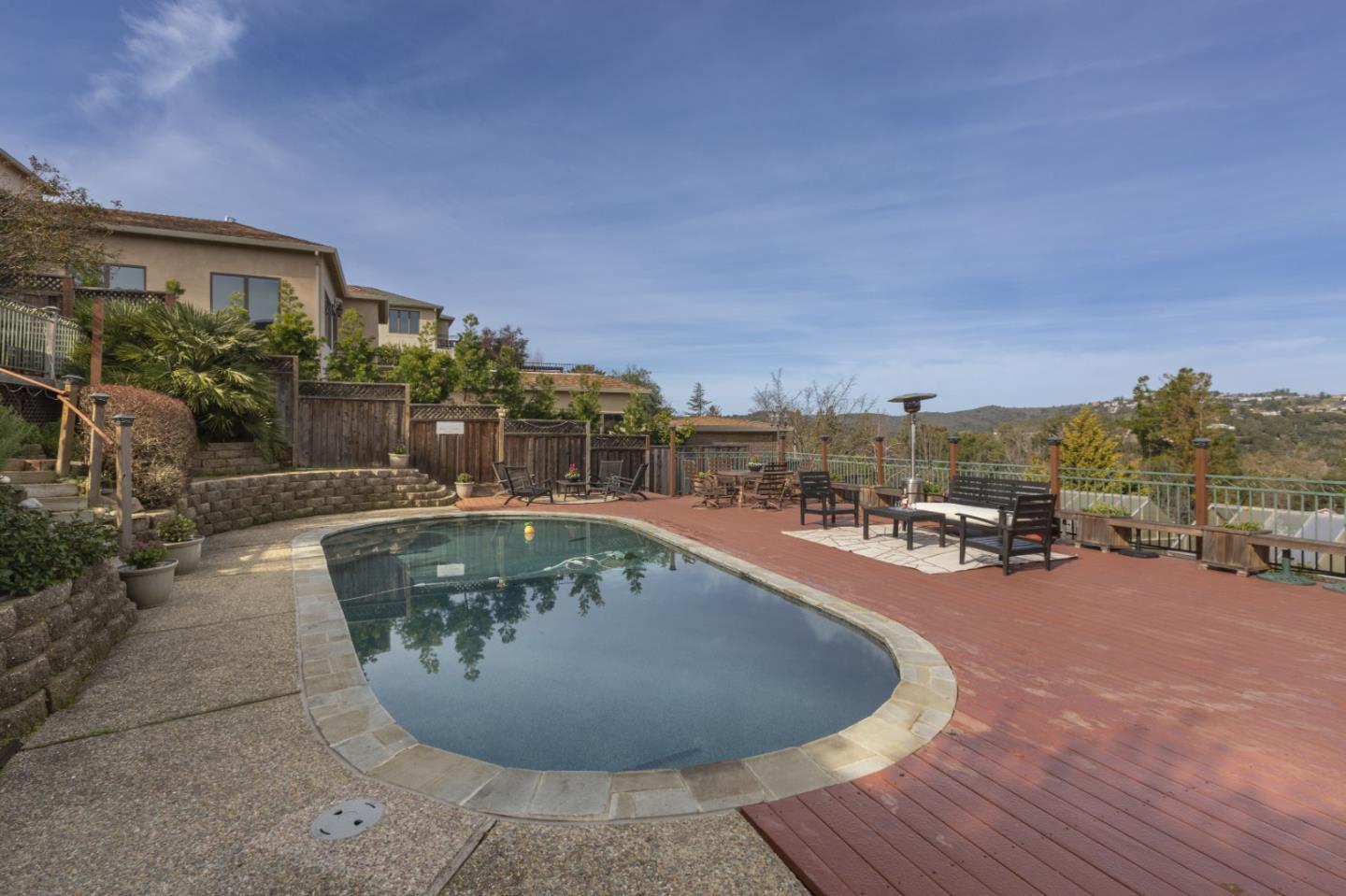 Welcome to your dream home, a stunning retreat in Emerald Hills. This exquisite property boasts breathtaking views of Edgewood Park and a glimpse of city lights, creating a picturesque backdrop for your lifestyle. Spanning over 17,000 sq ft, the expansive yard features a gorgeous pebble-bottom pool, vibrant orchards, and greenhouses, along with dedicated dining and entertaining spaces ideal for gatherings. In the summer, the owners would host community concerts, allowing the enjoyment of warm evenings filled with awe-inspiring sunsets and full moons. The thoughtfully designed first level showcases 3 bedrooms and 1.5 baths. The spacious, light-filled primary suite serves as a serene retreat, featuring a large walk-in closet and convenient laundry chute. Savor your morning coffee on your private deck while soaking in stunning views. The kitchen flows seamlessly into the living and dining areas, complete with a charming eat-in nook perfect for family meals. The lower level includes a generous bedroom with a full bath, closet, and private entrance, offering versatile options for an office, ADU, or family room. A detached two-car garage adds convenience to this property, full of creative potential. Experience a lifestyle enriched by nature's beauty and community spirit.