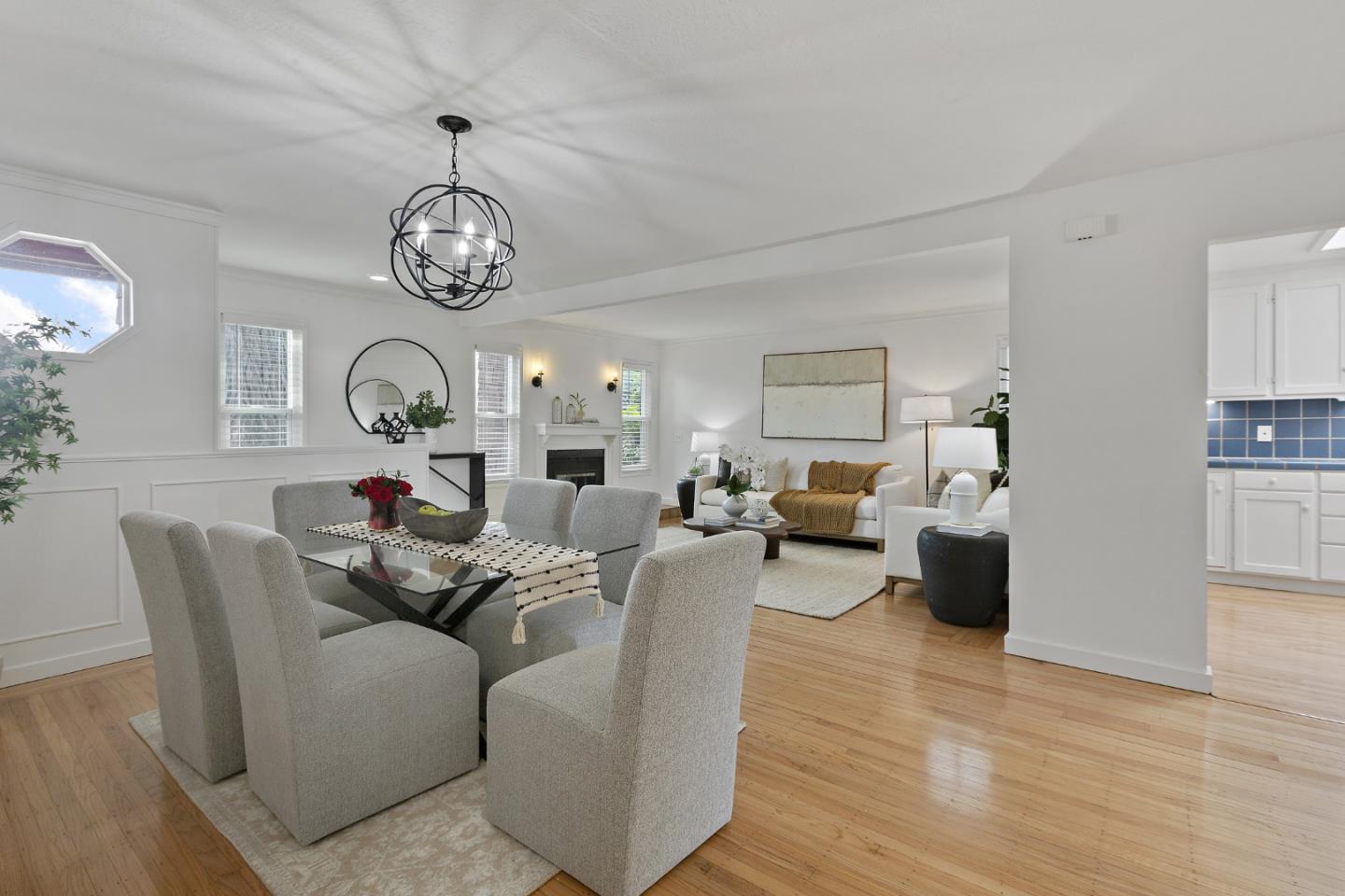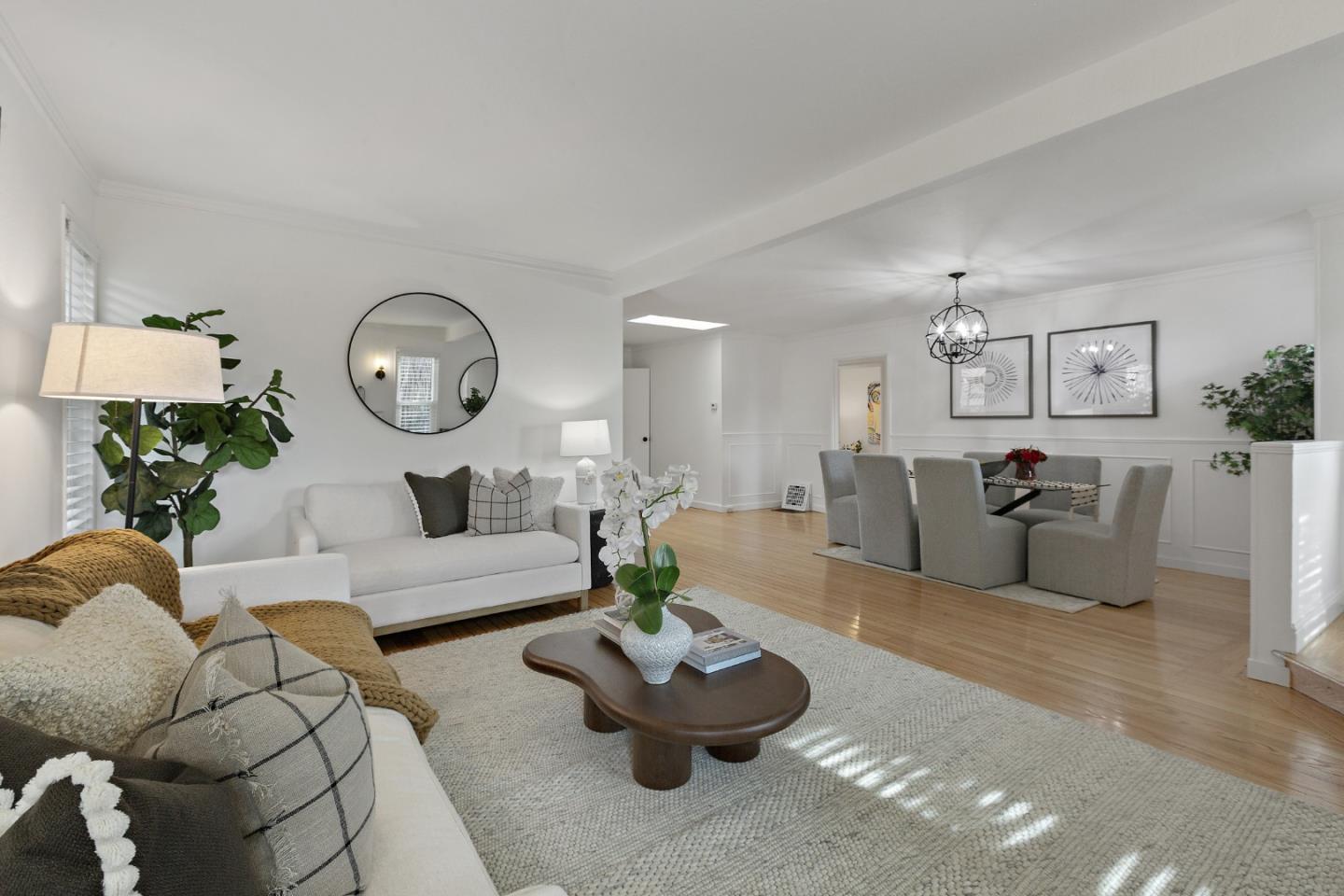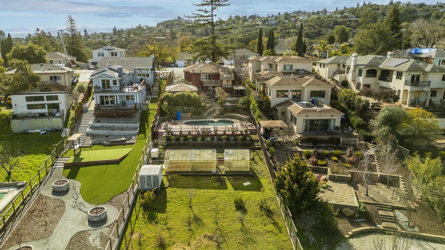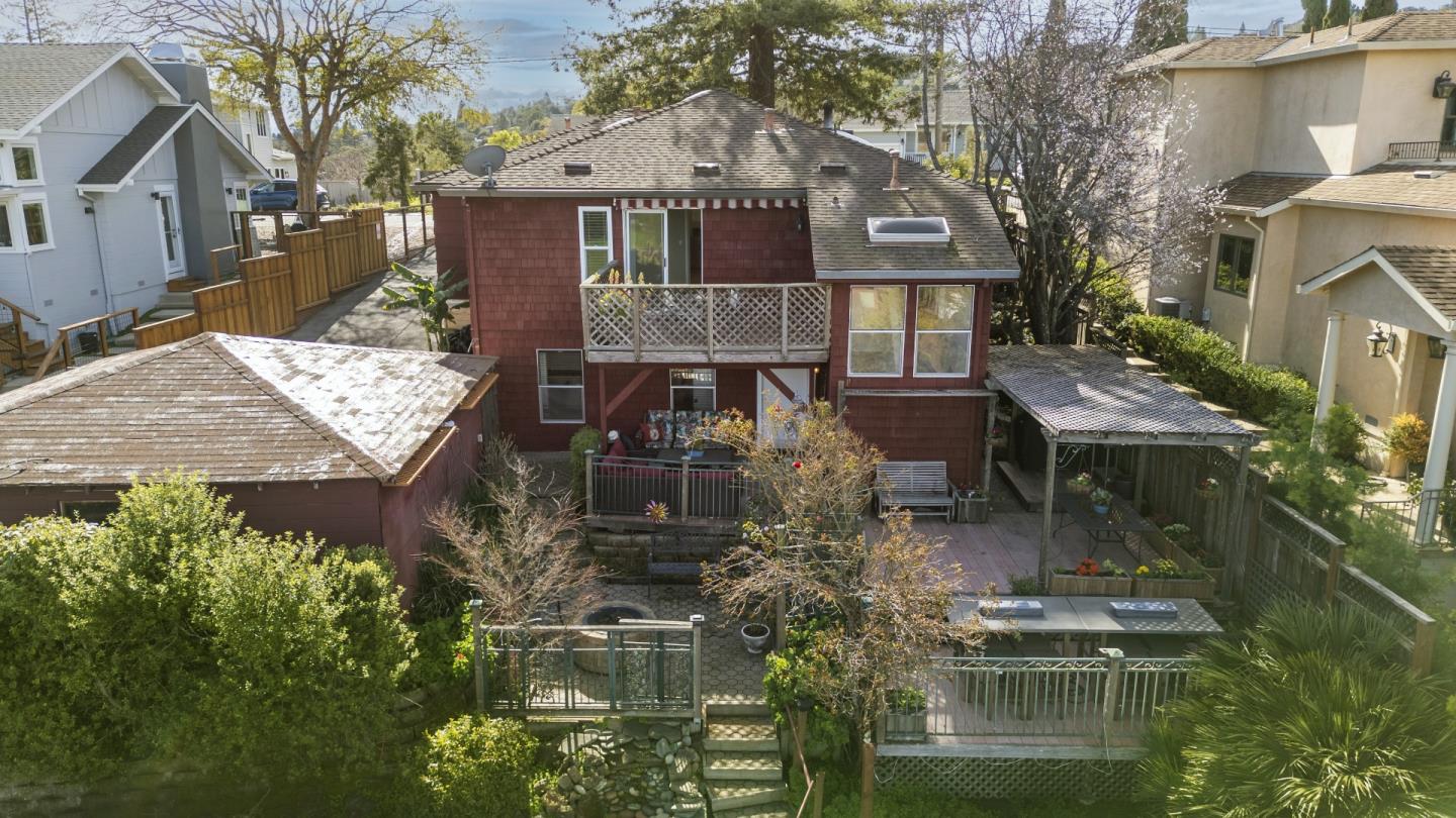 Welcome to your dream home, a stunning retreat in Emerald Hills. This exquisite property boasts breathtaking views of Edgewood Park and a glimpse of city lights, creating a picturesque backdrop for your lifestyle. Spanning over 17,000 sq ft, the expansive yard features a gorgeous pebble-bottom pool, vibrant orchards, and greenhouses, along with dedicated dining and entertaining spaces ideal for gatherings. In the summer, the owners would host community concerts, allowing the enjoyment of warm evenings filled with awe-inspiring sunsets and full moons. The thoughtfully designed first level showcases 3 bedrooms and 1.5 baths. The spacious, light-filled primary suite serves as a serene retreat, featuring a large walk-in closet and convenient laundry chute. Savor your morning coffee on your private deck while soaking in stunning views. The kitchen flows seamlessly into the living and dining areas, complete with a charming eat-in nook perfect for family meals. The lower level includes a generous bedroom with a full bath, closet, and private entrance, offering versatile options for an office, ADU, or family room. A detached two-car garage adds convenience to this property, full of creative potential. Experience a lifestyle enriched by nature's beauty and community spirit.