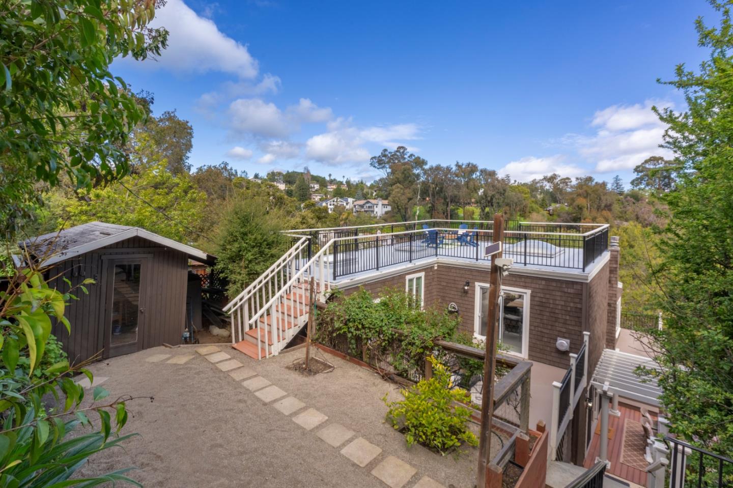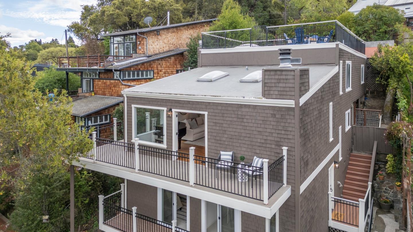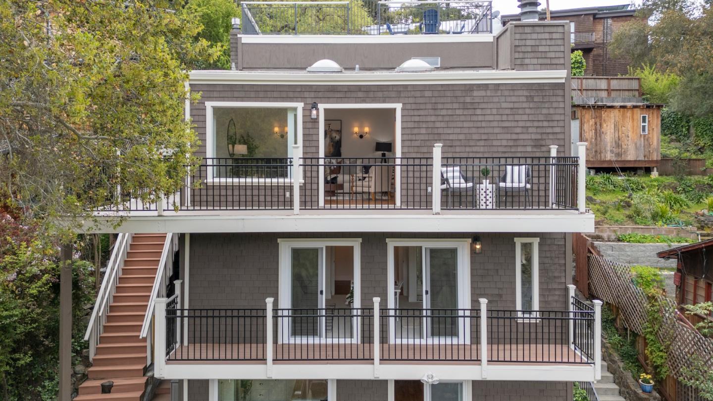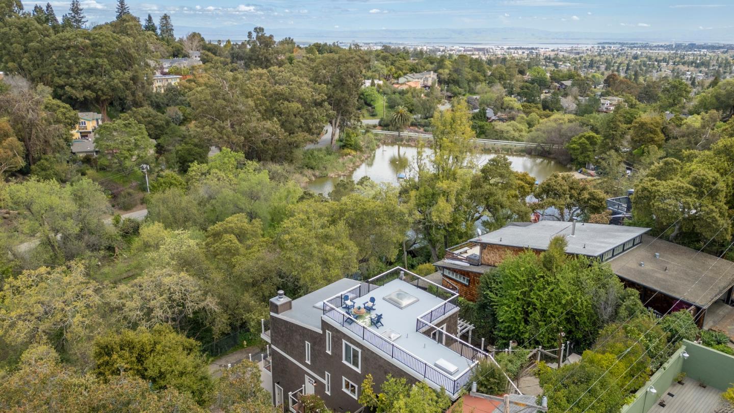 Welcome home to a place where elegant country living meets modern luxury. This stunning home includes 3 bedrooms, 2 bathrooms, a bonus nursery or office attached to the primary bedroom, and a separate studio apartment with a private entry, full kitchen, Murphy bed, and bathroom. The property offers a perfect balance of comfort and space for extended family, guests, or potential income. The home provides great amenities and timeless charm, such as hardwood floors and wrap-around decks on every level. The primary bedroom features skylights for romantic evenings under the moon and stars, while the primary bathroom includes a shower, soaking tub, and walk-in closet. The chef's kitchen, dining, and family room combination is equipped with a gas range, ambient fireplace, butler's pantry, and built-in desk for the whole family to work together. The spacious living room has high ceilings, a cozy fireplace, and windows that bring in the greenery and lake view. French doors lead to extended decks for a peaceful spot to relax. Head up to the rooftop deck, a personal favorite, to enjoy the breathtaking views. The private yard and patios feature mature fruit trees and plenty of garden space. Roy Cloud Do not miss this opportunity to make this extraordinary retreat your own.