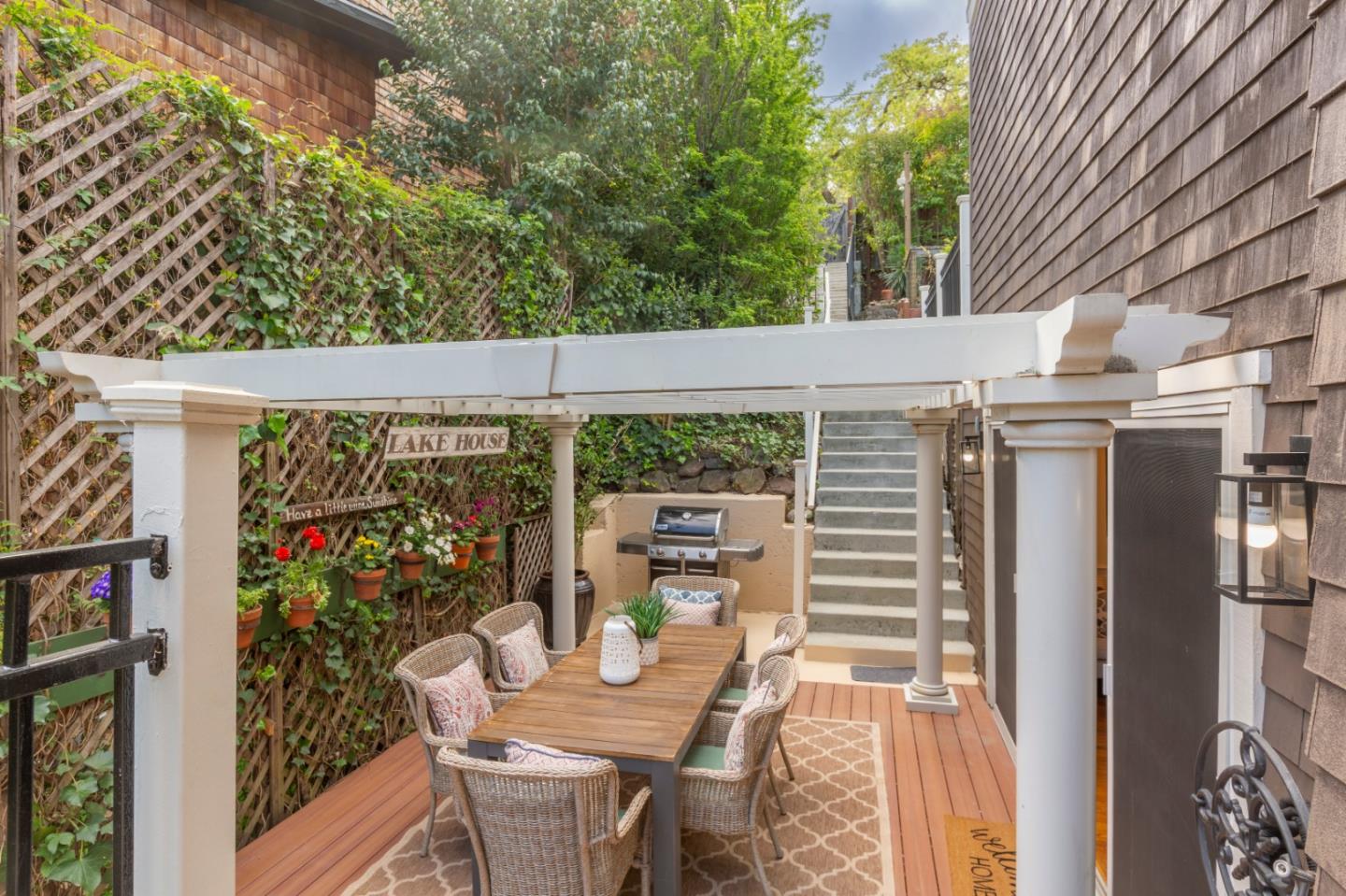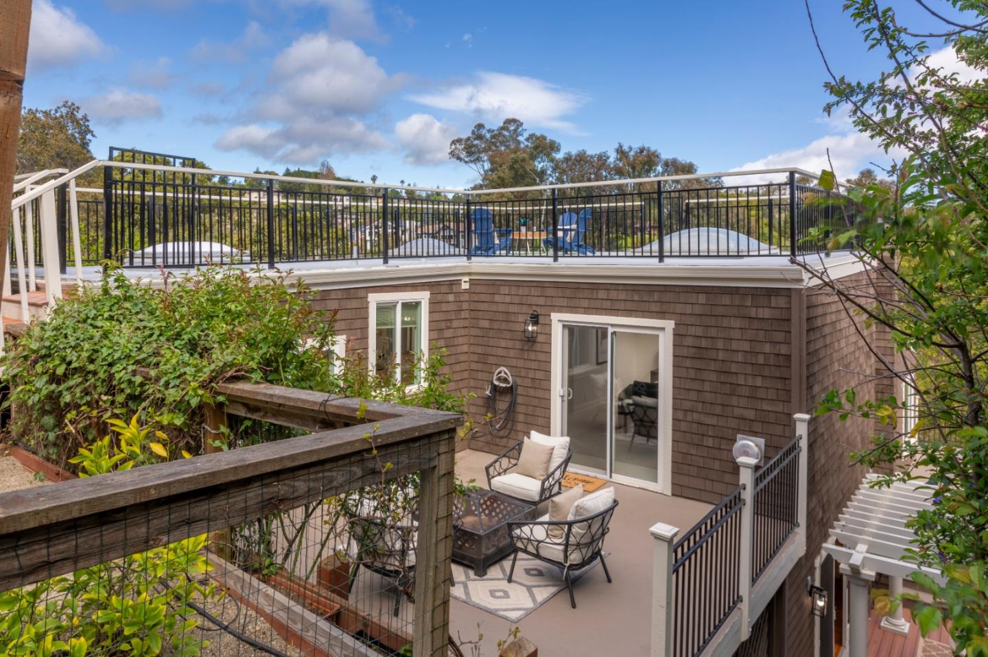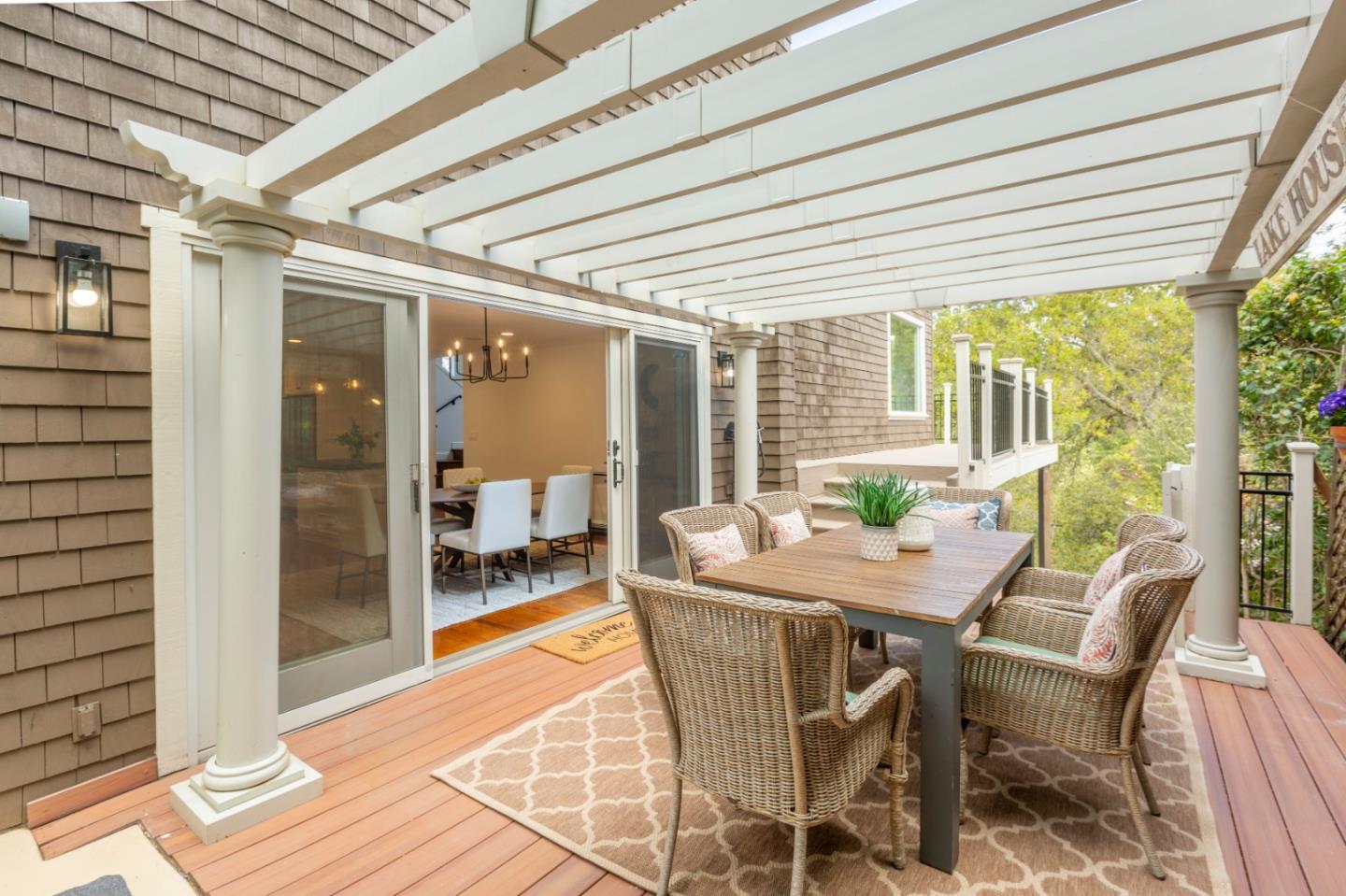 Welcome home to a place where elegant country living meets modern luxury. This stunning home includes 3 bedrooms, 2 bathrooms, a bonus nursery or office attached to the primary bedroom, and a separate studio apartment with a private entry, full kitchen, Murphy bed, and bathroom. The property offers a perfect balance of comfort and space for extended family, guests, or potential income. The home provides great amenities and timeless charm, such as hardwood floors and wrap-around decks on every level. The primary bedroom features skylights for romantic evenings under the moon and stars, while the primary bathroom includes a shower, soaking tub, and walk-in closet. The chef's kitchen, dining, and family room combination is equipped with a gas range, ambient fireplace, butler's pantry, and built-in desk for the whole family to work together. The spacious living room has high ceilings, a cozy fireplace, and windows that bring in the greenery and lake view. French doors lead to extended decks for a peaceful spot to relax. Head up to the rooftop deck, a personal favorite, to enjoy the breathtaking views. The private yard and patios feature mature fruit trees and plenty of garden space. Roy Cloud Do not miss this opportunity to make this extraordinary retreat your own.