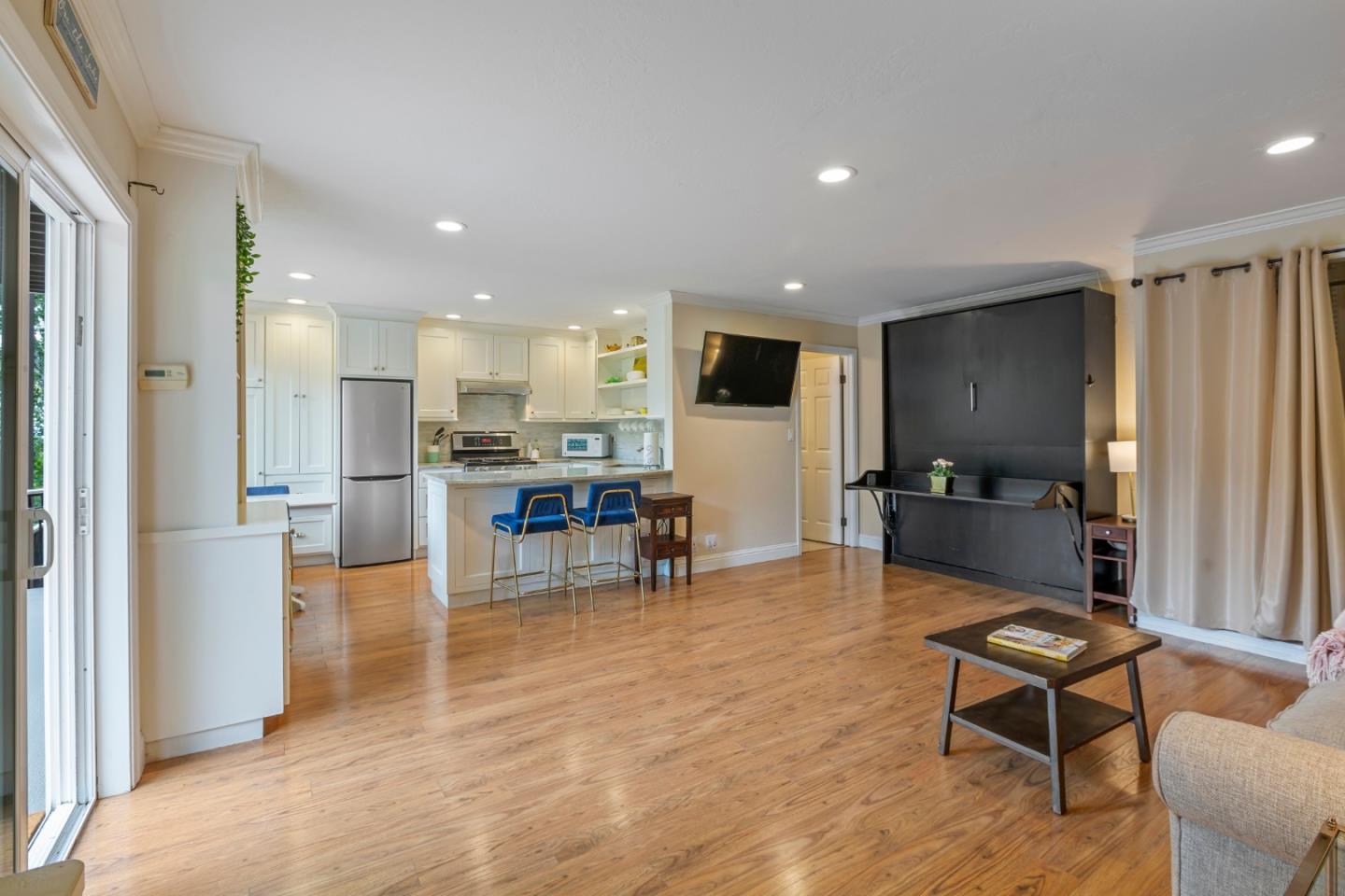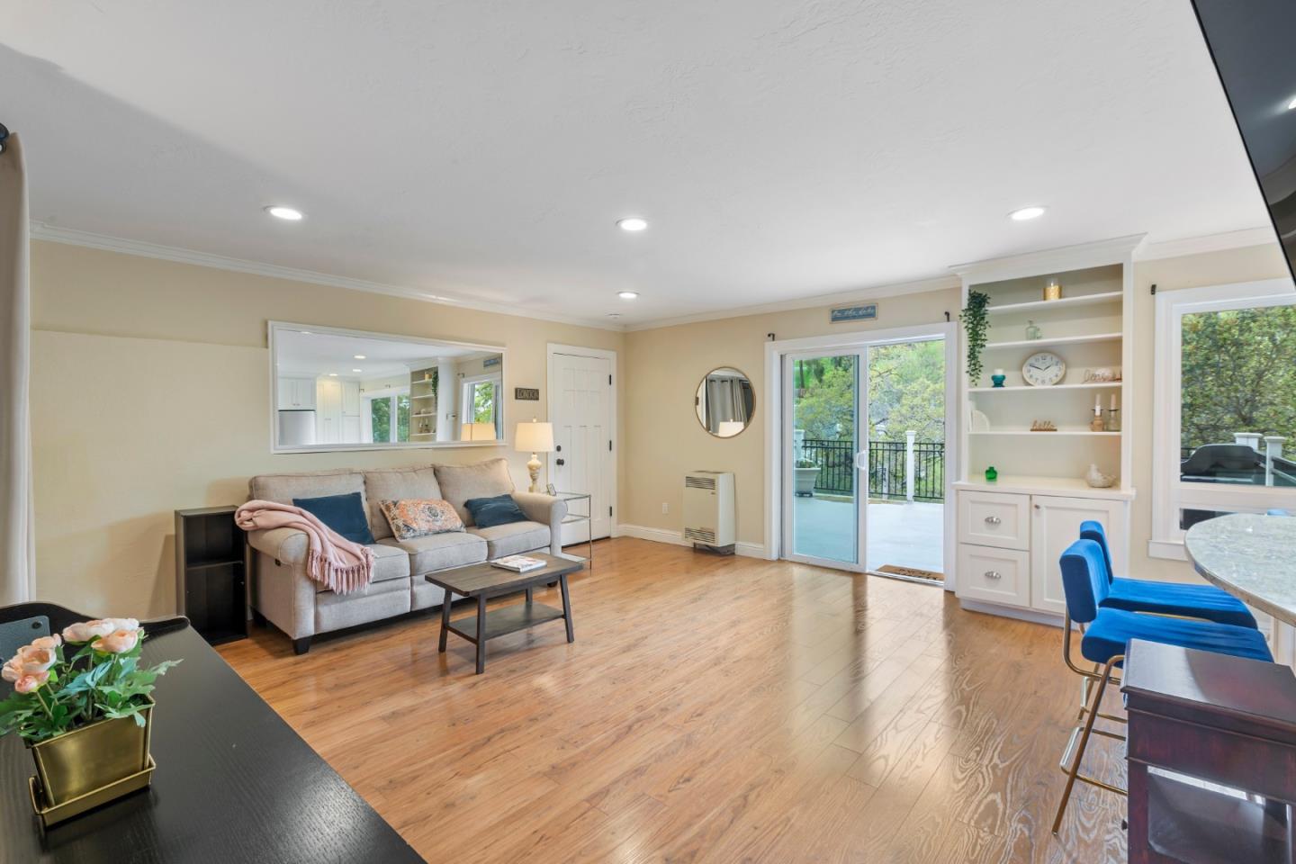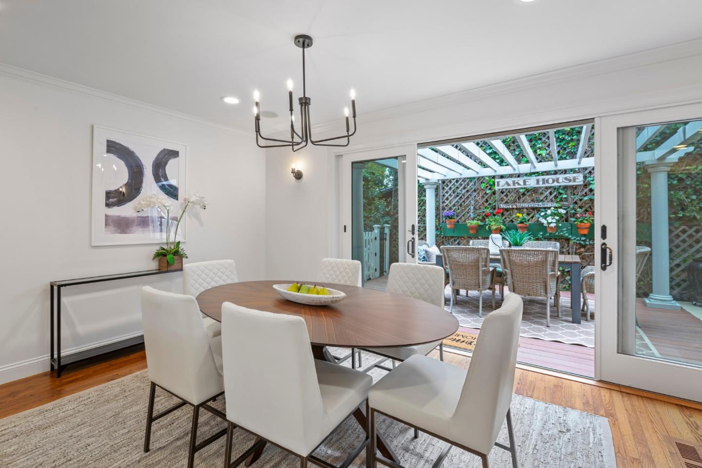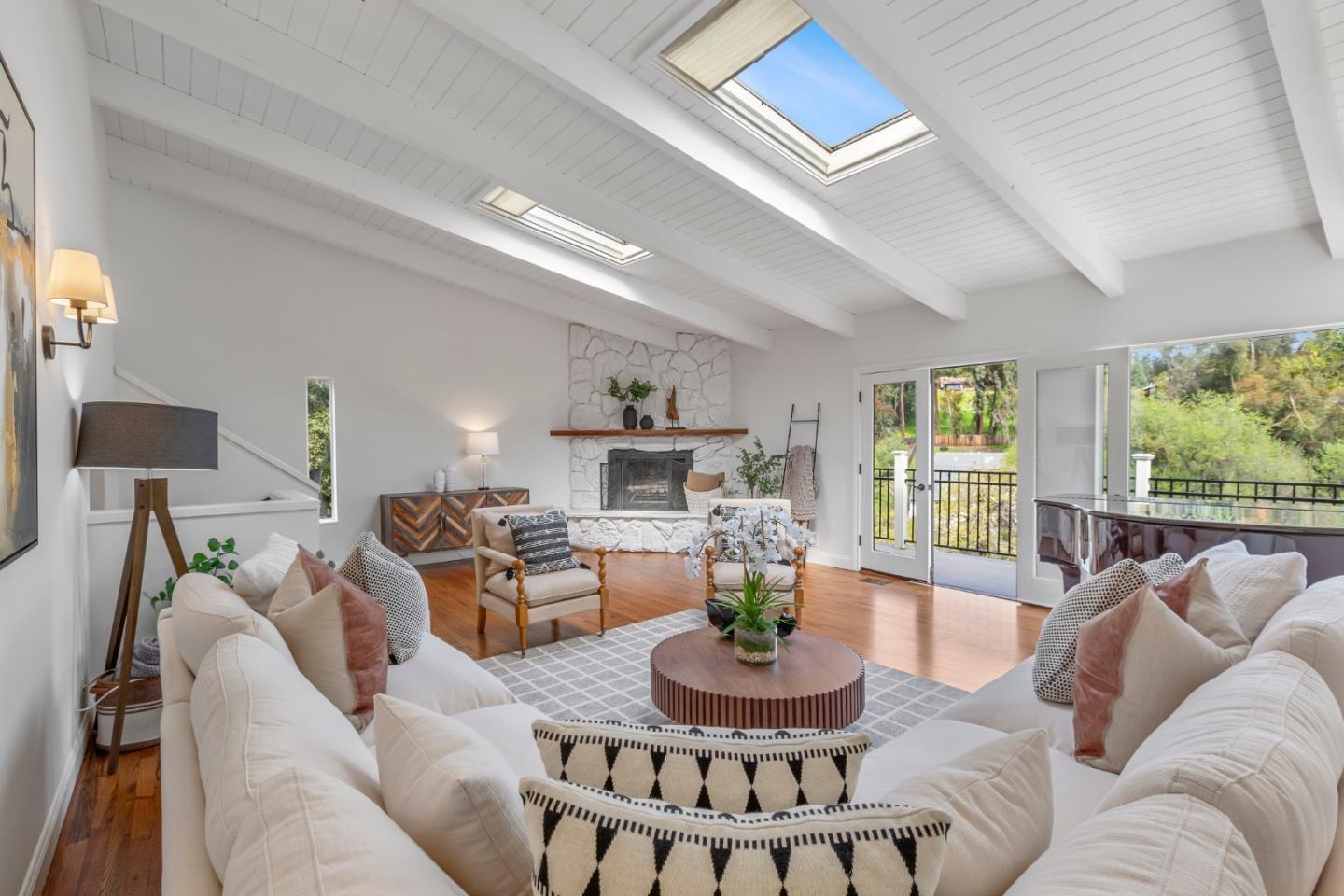 Welcome home to a place where elegant country living meets modern luxury. This stunning home includes 3 bedrooms, 2 bathrooms, a bonus nursery or office attached to the primary bedroom, and a separate studio apartment with a private entry, full kitchen, Murphy bed, and bathroom. The property offers a perfect balance of comfort and space for extended family, guests, or potential income. The home provides great amenities and timeless charm, such as hardwood floors and wrap-around decks on every level. The primary bedroom features skylights for romantic evenings under the moon and stars, while the primary bathroom includes a shower, soaking tub, and walk-in closet. The chef's kitchen, dining, and family room combination is equipped with a gas range, ambient fireplace, butler's pantry, and built-in desk for the whole family to work together. The spacious living room has high ceilings, a cozy fireplace, and windows that bring in the greenery and lake view. French doors lead to extended decks for a peaceful spot to relax. Head up to the rooftop deck, a personal favorite, to enjoy the breathtaking views. The private yard and patios feature mature fruit trees and plenty of garden space. Roy Cloud Do not miss this opportunity to make this extraordinary retreat your own.