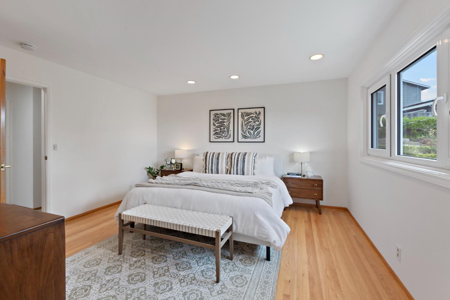 Welcome to a charming oasis nestled in a quiet neighborhood. This home offers 3 beds, 2.5 baths with bay views from the kitchen to the primary bedroom. As you step inside through the formal entry, you'll be greeted by a warm and inviting living space, adorned with a dining area incorporating ample natural light and a seamless flow to the backyard. The well-appointed kitchen boasts traditional charm with a breakfast booth, plenty of counter space, and lots of cabinets. Additionally, there's a separate space that can be used as a family room, office, or potential 4th bedroom. The primary bedroom offers views, an en-suite dressing area, and a private bathroom. The additional bedrooms offer flexibility for a home office or guest rooms. Discover the enchanting magical garden, a perfect setting for outdoor entertaining or simply unwinding. This home is just moments away from trails, parks, shopping, and easy access to 280, ensuring a lifestyle of ease and convenience. Don't miss the opportunity to make this charming residence your own and experience the best of Redwood City living!!! and near Roy Cloud School. Schedule a showing today and envision the possibilities that await in this delightful home."